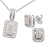 Amazon.com Collection E18258DISSSET, A classic diamond set with a modern twist, the Sterling Silver Emerald Shaped Diamond Earrings and Pendant Set makes a wonderful gift. Resting at the base of an 18-inch rope chain is a gathering of prong-set round shaped diamonds that create the resemblance of a single emerald-shaped stone. This same design is paired on matching friction-back post stud earrings. With I-J color and I2-I3 clarity, the diamonds make up .35 cttw. ...