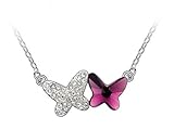 14 kt White Gold Plated Purple Butterfly Pendant made with Swarovski Elements on 16 Inch Adjustable Chain - 1/20 14KGF White Gold